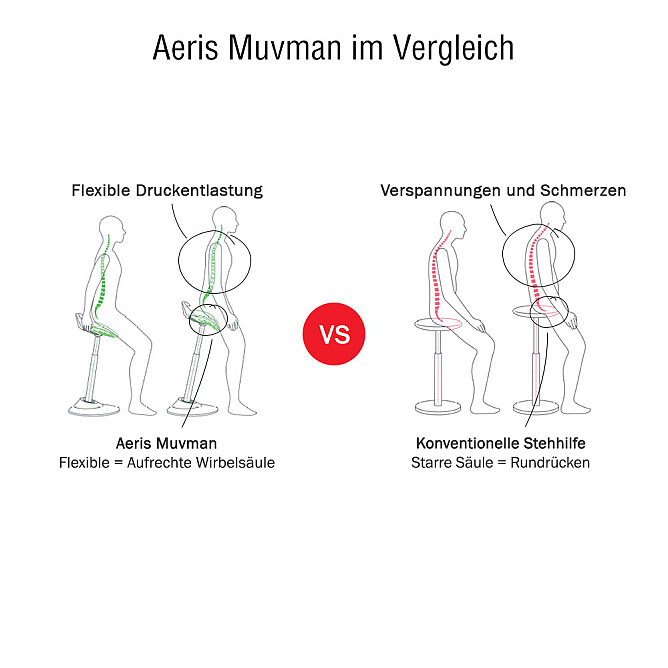 Für den menschlichen Bewegungsapparat ist kaum etwas so ungesund wie dauerndes, starres Sitzen. Die Folgen der mangelnden Bewegung spüren wir tagtäglich: Rückenschmerzen, Übergewicht und Herz-Kreislauf-Erkrankungen sind zum Volksleiden geworden. Mit dem Aeris Muvman machen Sie Schluss mit dem alltäglichen Sitzmarathon und bringen Bewegung in Ihren Alltag!