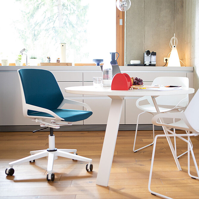 Unser Tipp: Nutzen Sie den Aeris Numo Task am Besprechungs- oder Esstisch. Er ist für einen kleinen Homeoffice-Arbeitsplatz ebenso geeignet, wie in einem Beratungsbereich oder Praxisraum. Erleben Sie, wie ergonomisches Design Ihren Alltag revolutionieren kann. Lernen Sie unsere passenden Tische von Hammerbacher kennen: