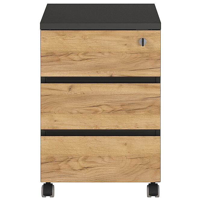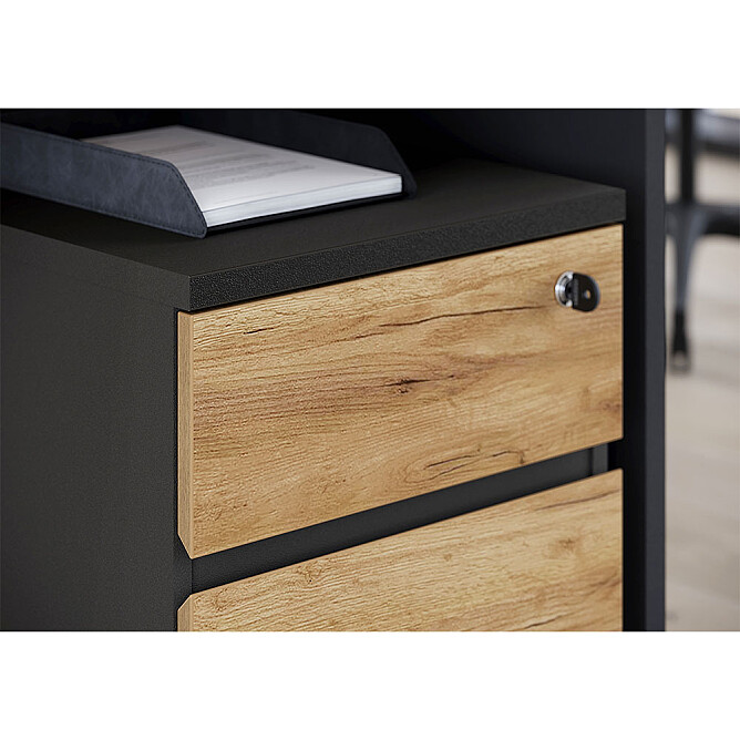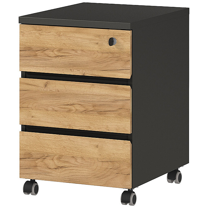 Ausführung: GERMANIA Lissabon - Rollcontainer mit 3 Schubladen / Dekor: Graphit / Navarra-Eiche