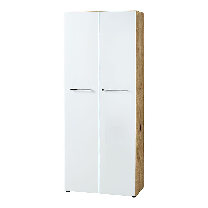 GERMANIA Monteria - Aktenschrank mit 5 Ordnerhöhen & 2 Türen mit Glasauflage / Dekor: Navarra-Eiche / Weiß