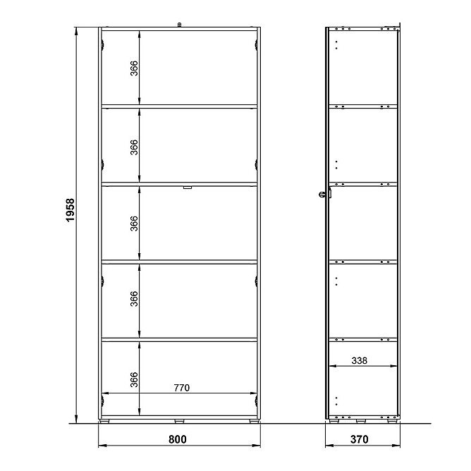 - Aktenschrank mit zwei Türen - dahinter vier feste Böden (je belastbar bis zu 22 kg)