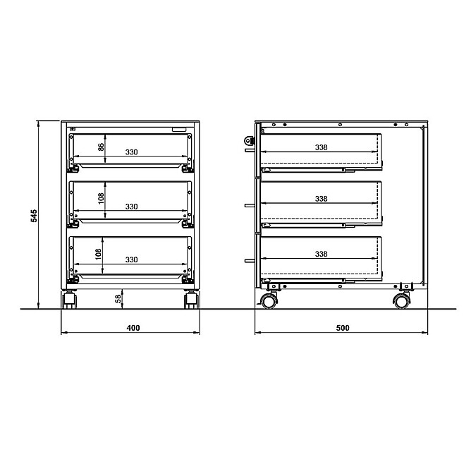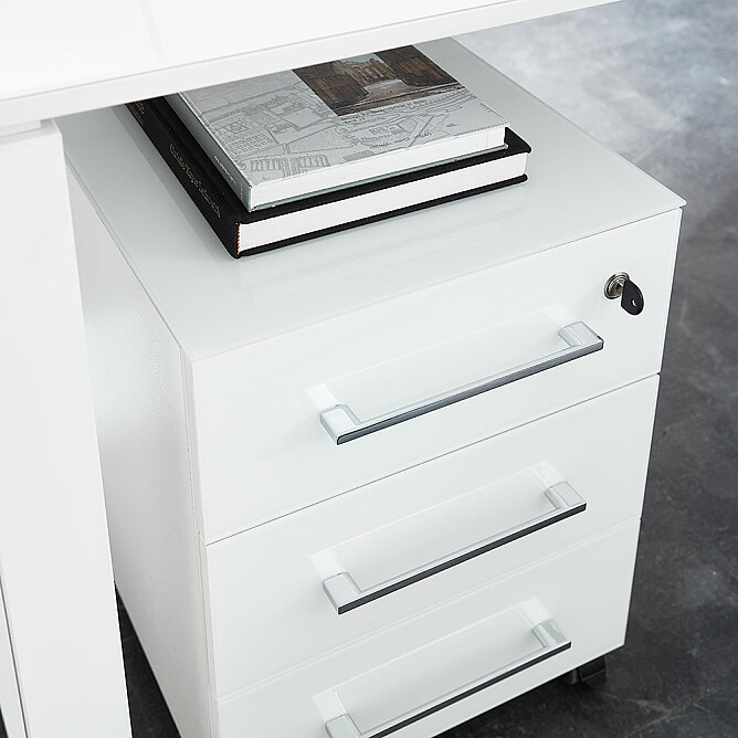 - Rollcontainer mit drei Schubladen inkl. Selbsteinzug (jeweils belastbar bis zu 10 kg) - eine davon abschließbar