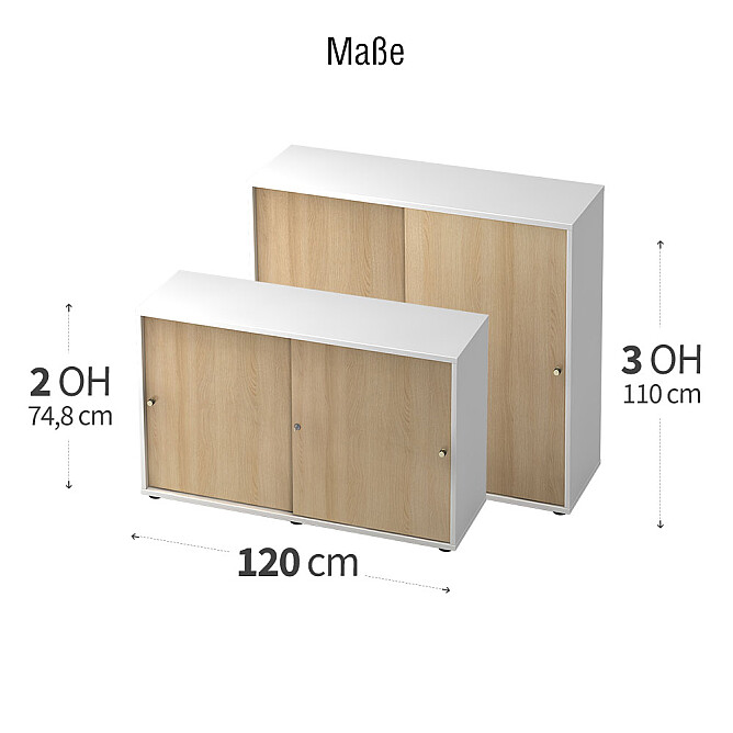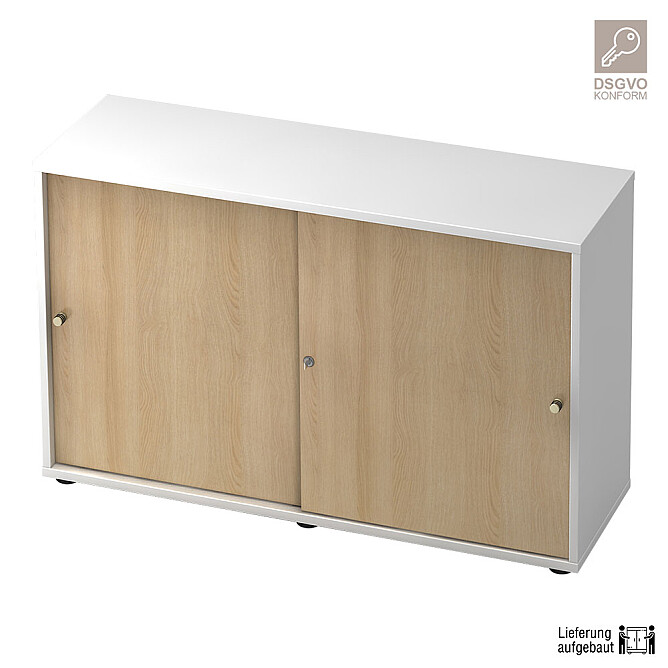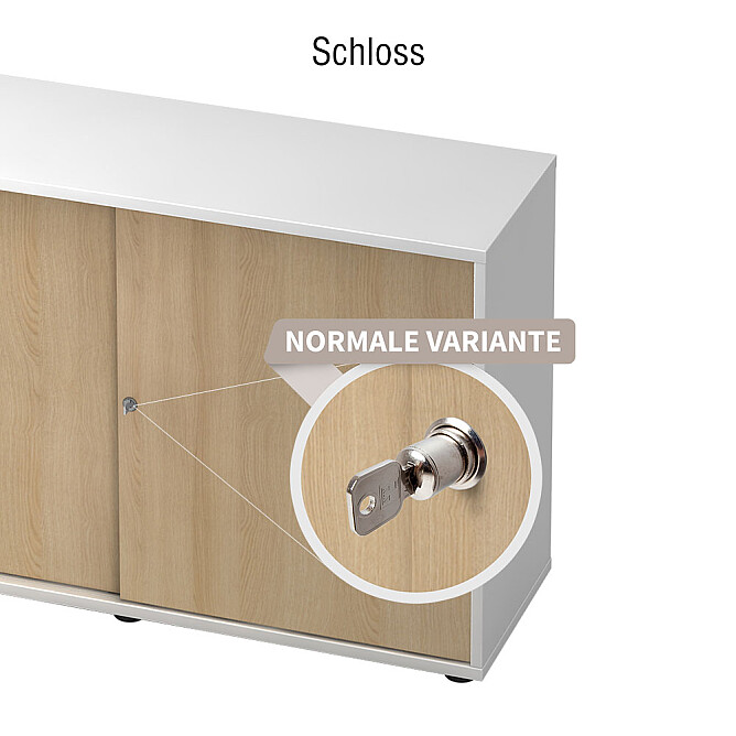Darüber hinaus besticht der Schiebetürenschrank mit einer klaren und aufgeräumten Optik und dient als unauffällige Aufbewahrungsmöglichkeit - ideal für Aktenordner und Büromaterialien. Und das serienmäßige Schloss gewährleistet eine datenschutzkonforme Aktenaufbewahrung.
