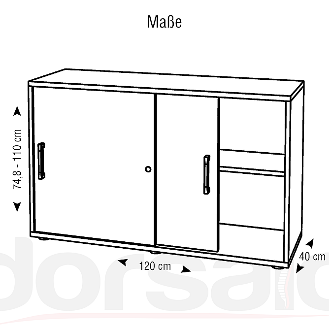 - Abschließbarer Aktenschrank mit 2 Schiebetüren und 1 Mittelseite