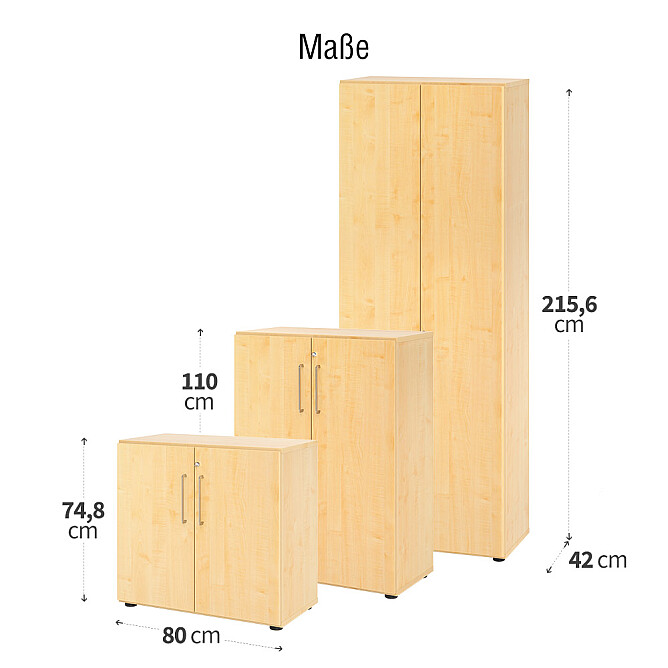 Hammerbacher Serie 9 - Schrank 6 OH  2 Türen / Breite: 80 cm / Dekor: Ahorn / Griff: Metallgriff + Schloss