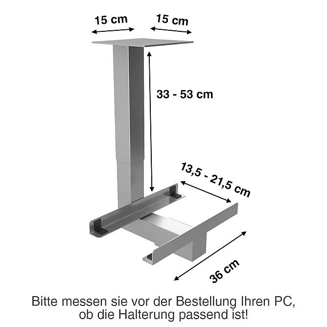 - Verstellbereich PC-Halterungsleisten in der Breite: 13,5 cm - 21,5 cm