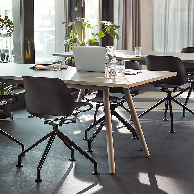 Unser Tipp: Kombinieren Sie den Aeris Numo mit einem höhenverstellbaren Schreib- oder Konferenztisch. So entkommen Sie nicht nur dem täglichen, starren Sitzmarathon, sondern Sie sitzen und stehen aktiv. Lernen Sie unsere höhenverstellbaren Tische von Hammerbacher kennen: