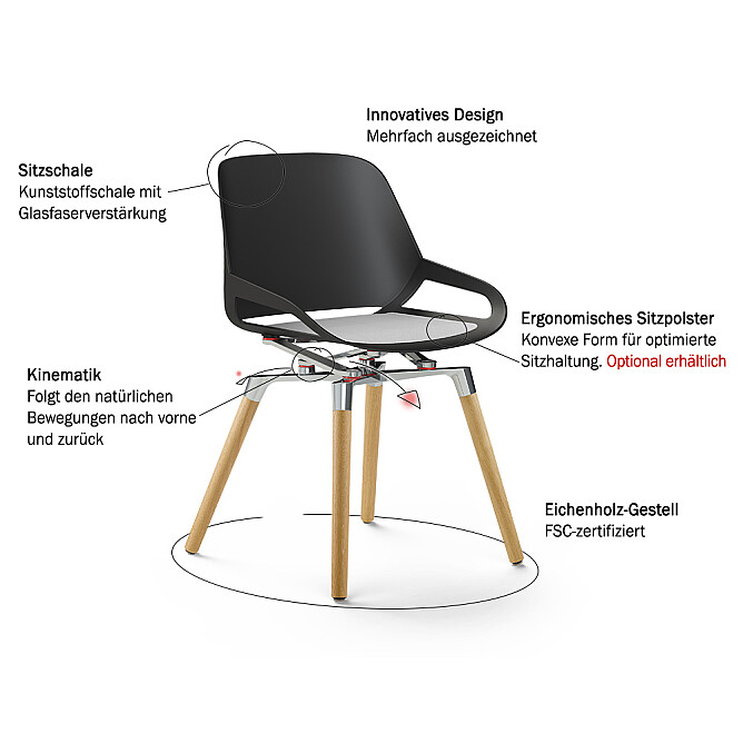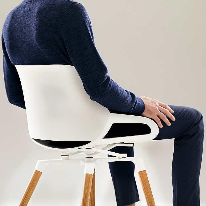 Zeitloses Design mit innovativer Mechanik kombiniert. Ein optionales Design-Element ist das rutschfeste Sitzpolster in 5 verschiedenen Farben. >> Numo Sitzkissen