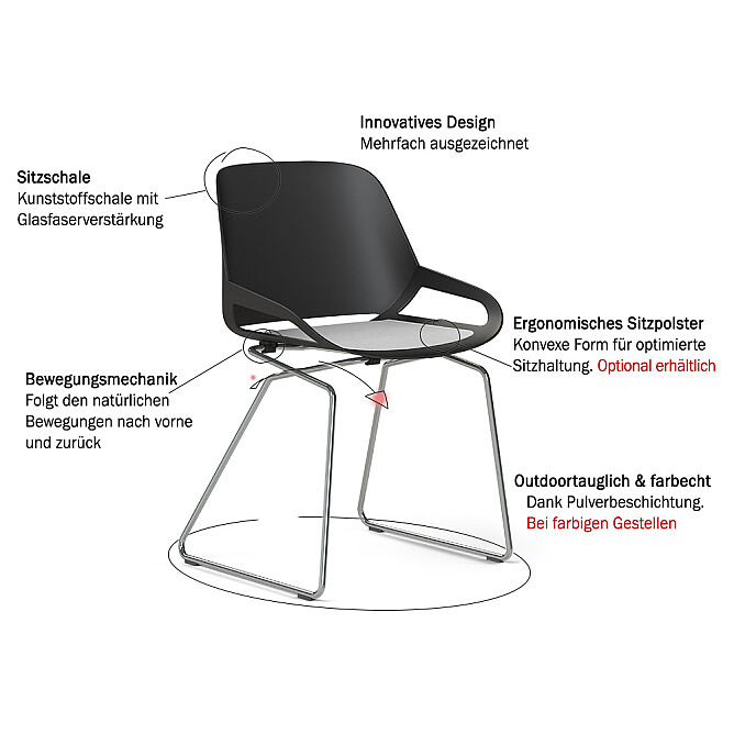 Mit Stil sitzen statt Stillsitzen! Der Aeris Numo vereint einzigartiges Design mit innovativer Bewegungsmechanik. Im Meeting, Pausenraum oder zuhause am Esstisch, der Numo sorgt für positive Schwingungen. Die einzigartige Bewegungsmechanik ermöglicht ein aktives Sitzen. Besonderer Clou: Das Kufengestell mit Pulverbeschichtung (Modelle mit farbigen Gestell) sind sogar im Außenbereich einsetzbar.