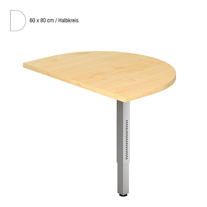Anbauplatte für Hammerbacher Schreibtisch R Größe: 60x80 cm - Halbkreis / Dekor: Ahorn / Gestell: Silber