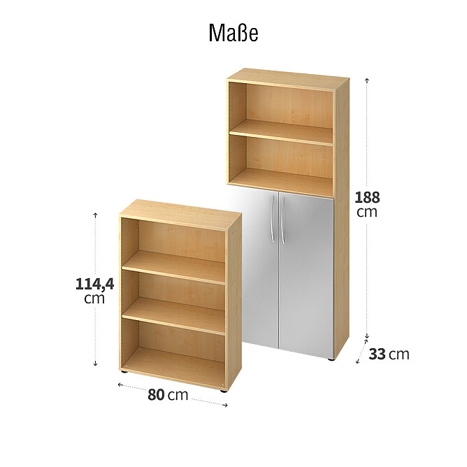 Hammerbacher Schrankwand Basic 5 OH / 2 Türen / Höhe: 188 cm / Dekor: Ahorn