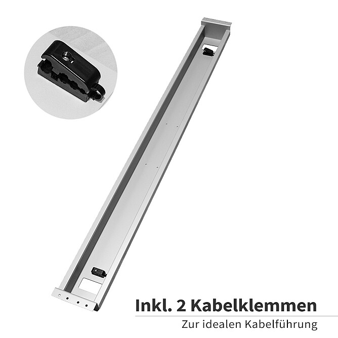Kabelführung leicht gemacht dank 2 Kabelklemmen und 2 Ausklinkungen zur Kabeldurchführung.
