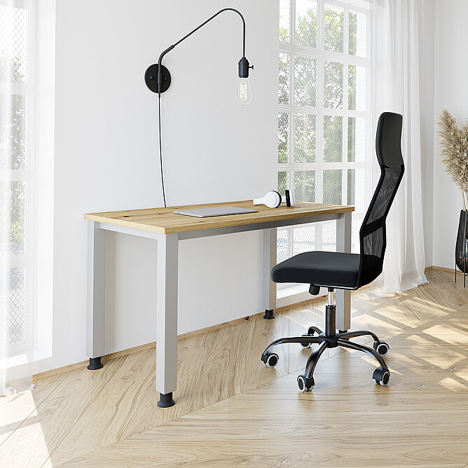 Hammerbacher Schreibtisch Serie Q - Mini Home Office  Größe: 120x67,2 cm / Dekor: Asteiche / Gestell-Farbe: Silber