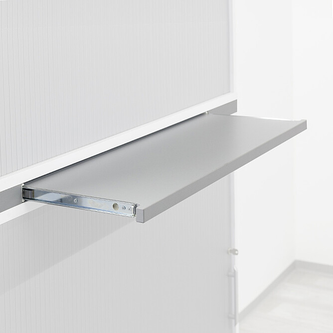 Sie haben sich mit den Schiebetürenschränken von Hammerbacher genug Stauraum für Ihre Akten und Unterlagen geschaffen - benötigen aber noch zusätzliche Ablagefläche? Hier bietet Ihnen Hammerbacher mit dem Auszugboden, speziell für gestapelte Schiebetür- und Rollladenschränke von Hammerbacher, eine clevere Löschung um sich schnell und einfach zusätzliche Ablagefläche zu schaffen.