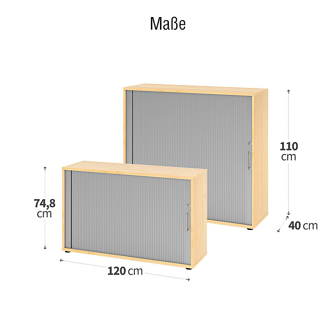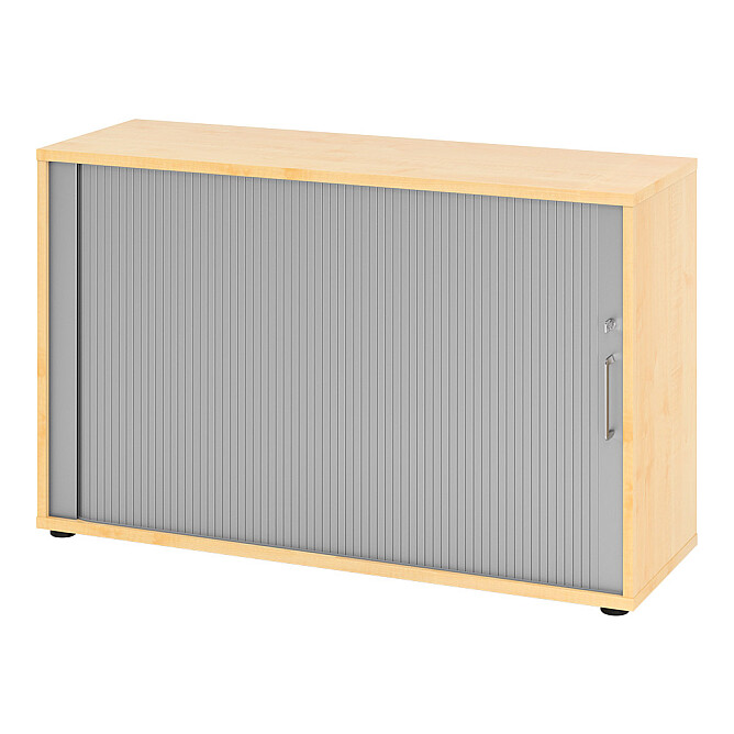 Hammerbacher Serie 9 - Rollladenschrank 2 OH Größe: 120 x 40 x 74,8 cm / Dekor: Ahorn/Silber / Griff: Metallgriff
