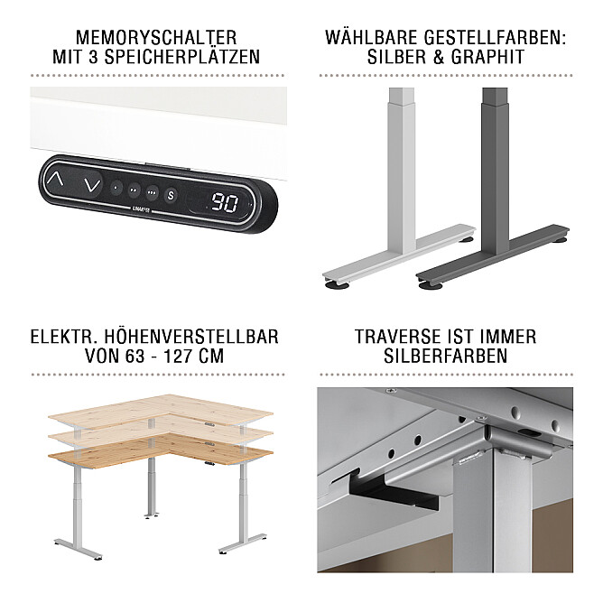 Ausführung: Hammerbacher Winkelschreibtisch Serie XDSMW - elektrisch höhenverstellbar