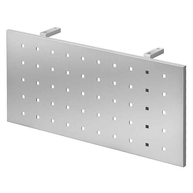 Die Sichtblende RSI ist eine praktische Ergänzung für die Hammerbacher Serie R, um die sichtbare Rückseite am Schreibtisch zu verblenden - z.B. um hängende Kabel zu verdecken. Das Lochmuster der Blende fällt gröber und eckiger aus, als bei der Sichtblende SI. Die Oberfläche der Blende ist pulverbeschichtet und ist in den Farben Silber und Graphit verfügbar. Die Sichtblende lässt sich ohne viel Aufwand an der Tischunterseite verschrauben.
