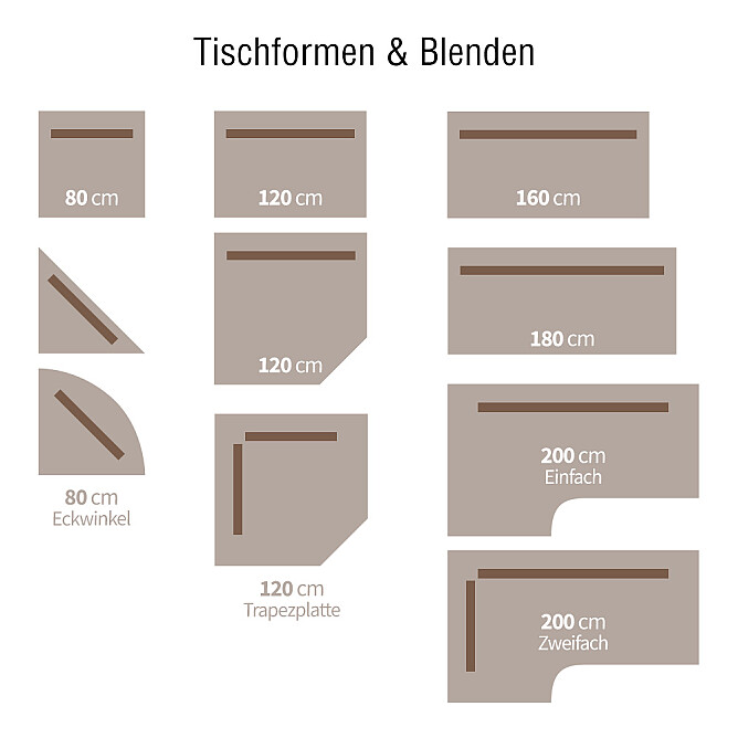 - Abstand zwischen Sichtblende und Tischkante: 1 cm